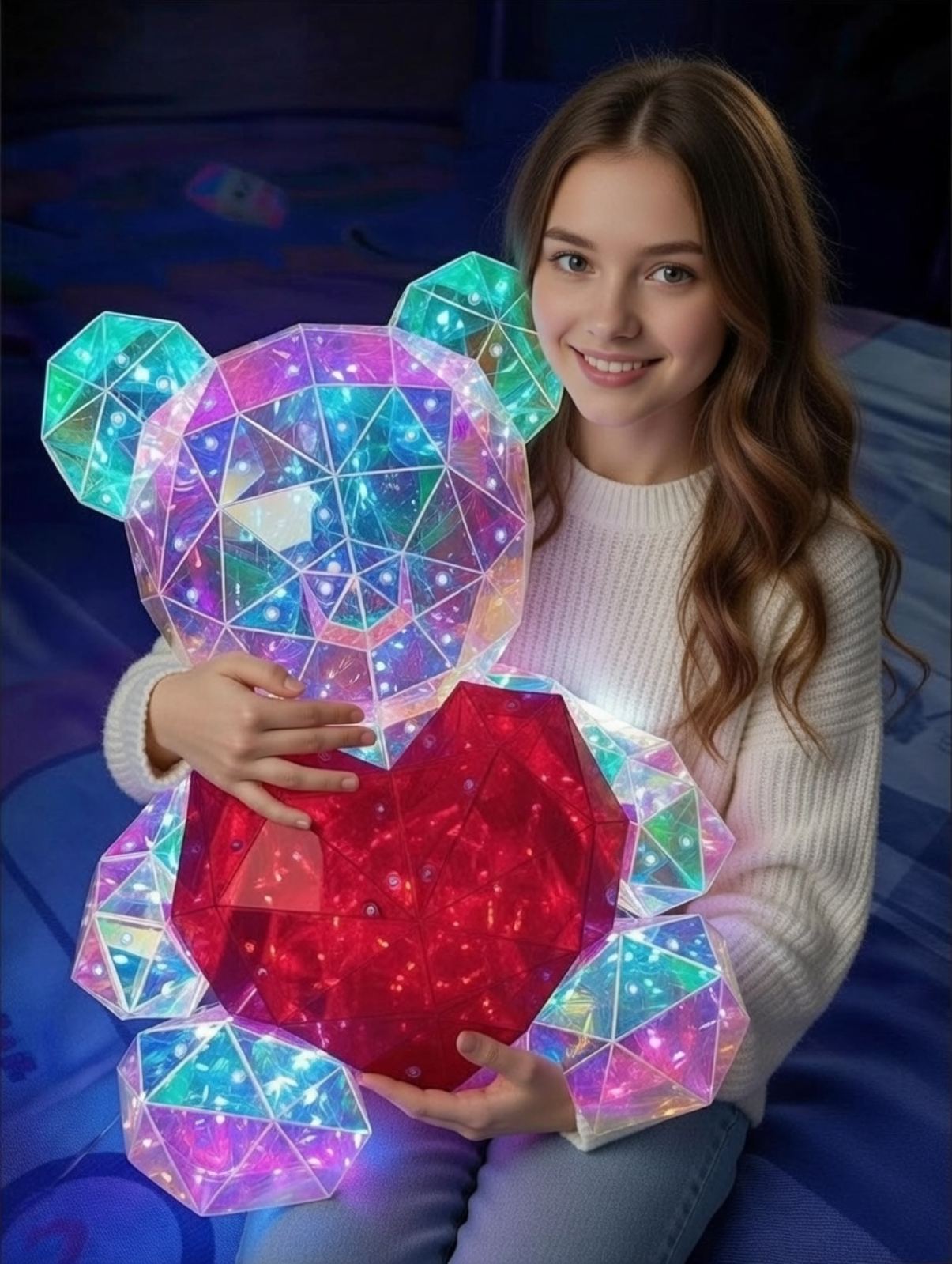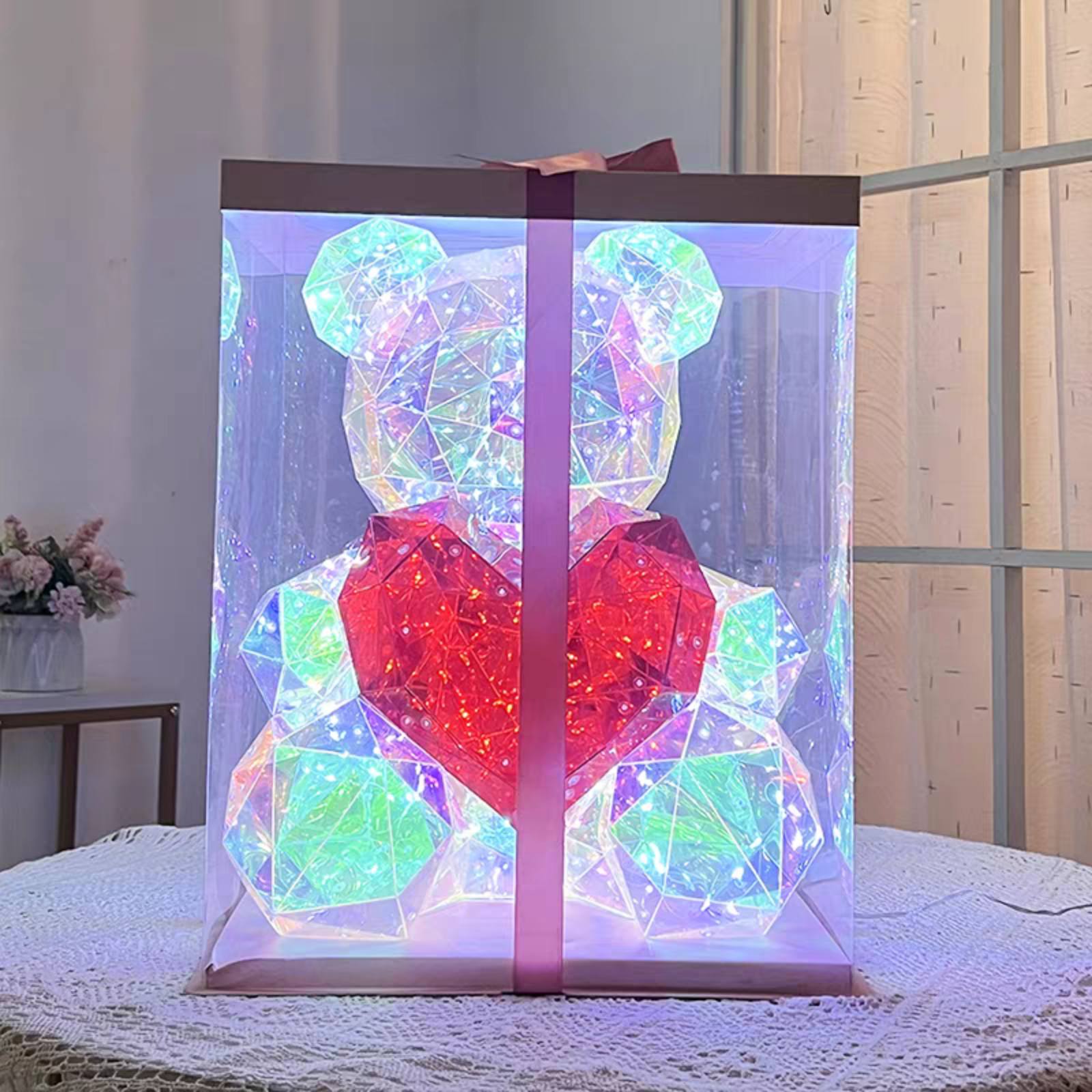 Изменяет цвет под разными углами. В отличие от других источников света, мишка меняет цвет под разными углами. Даже если его не зажигать, он все равно сверкает на солнце. Красочные световые эффекты придадут святую более романтичную атмосферу.