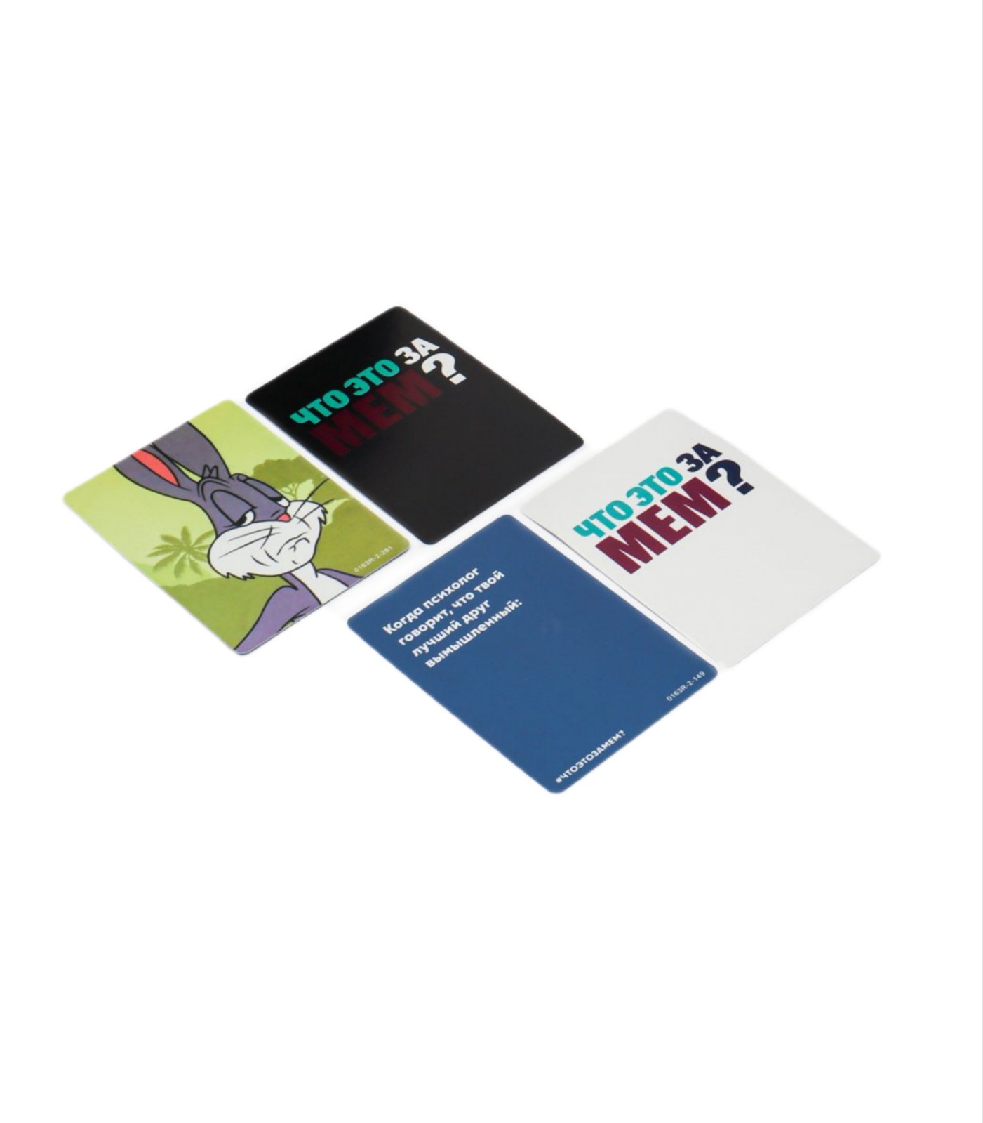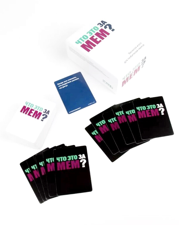 Это весёлая настольная игра, созданная для больших компаний и шумных вечеринок. Карты с мемами — популярное развлечение в мире, а теперь доступно и в России. Эта версия — одна из самых востребованных на русском языке. С “Что за MEM”? вас ждёт море смеха в кругу семьи или друзей, будь то домашний вечер или весёлая тусовка. Современная и продуманная до мелочей игра станет отличным подарком для близких и обязательно займёт почётное место в коллекции любителя настолок и развлечений офлайн.