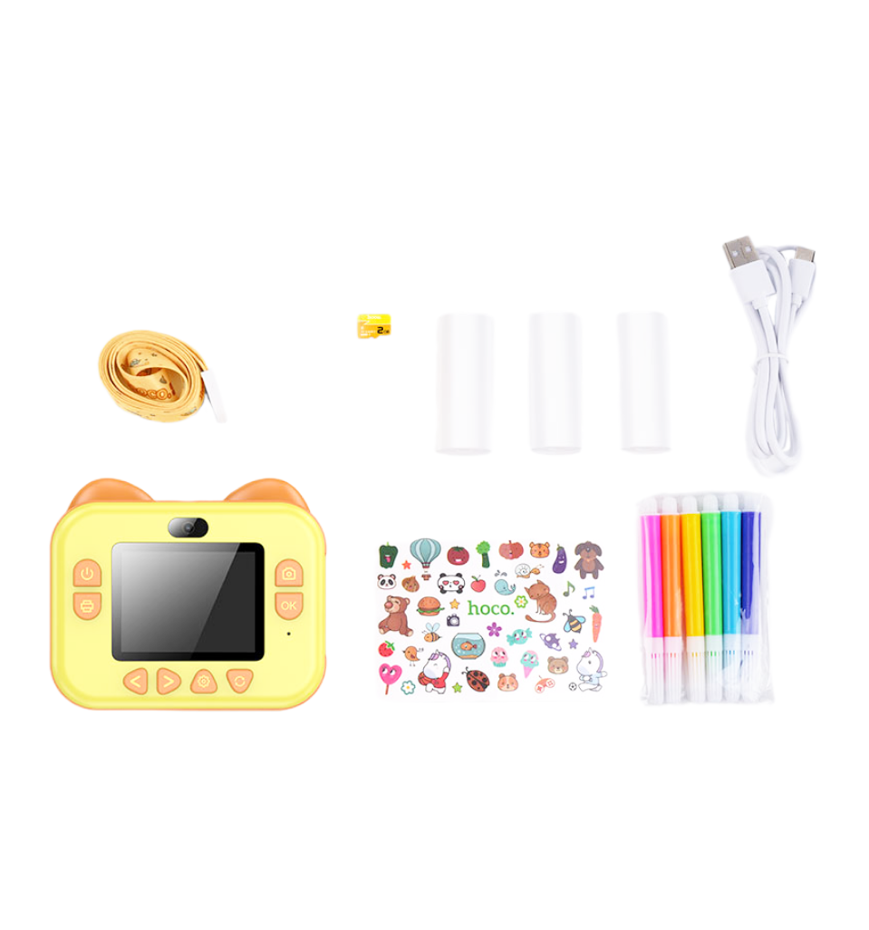 Этот многофункциональный цифровой фотоаппарат создан специально для детей и начинающих фотографов. Он оснащён основной и фронтальной камерами, ярким 2,4-дюймовым IPS-экраном и поддерживает фото- и видеосъёмку. Удобное меню с поддержкой 22 языков, включая русский, делает использование простым и понятным.Фотоаппарат позволяет делать снимки высокого разрешения, записывать видео, использовать вспышку и таймер, а также моментально печатать фотографии, превращая процесс съёмки в увлекательную игру. Встроенный аккумулятор обеспечивает длительную работу, а зарядка через Type-C делает использование удобным и современным.Компактный размер и небольшой вес позволяют легко брать камеру с собой на прогулки и в путешествия.