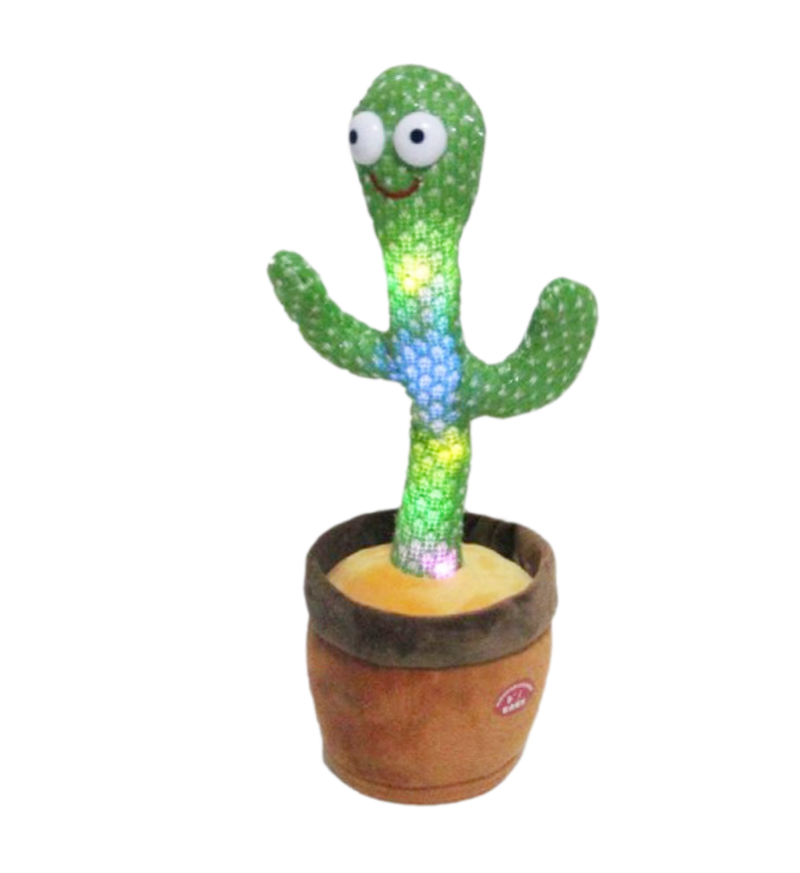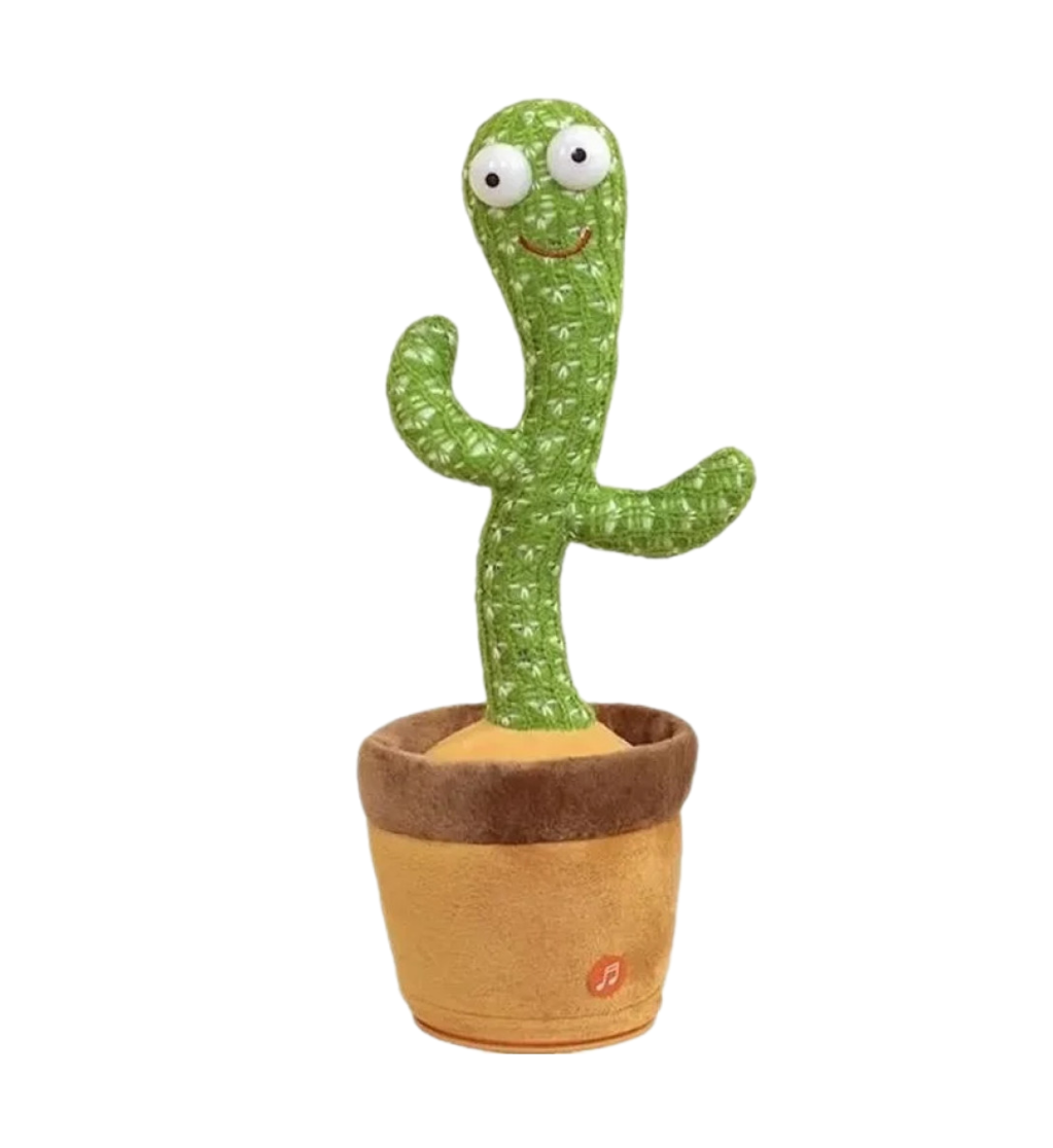 Интерактивная игрушка в виде кактуса предназначена для развлечения детей и взрослых. Кактус танцует под музыку, воспроизводит встроенные мелодии и повторяет услышанные звуки, создавая эффект живого общения. Игрушка реагирует на голос, записывает и воспроизводит фразы, сопровождая их движениями и световыми эффектами.Подходит для игр дома, в детской комнате, на праздниках и в качестве оригинального подарка. Мягкий текстильный корпус безопасен для детей, устойчивое основание обеспечивает надёжную фиксацию на поверхности.