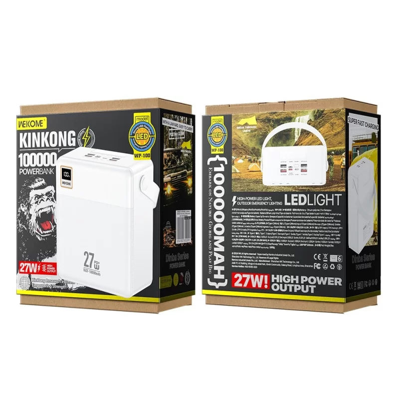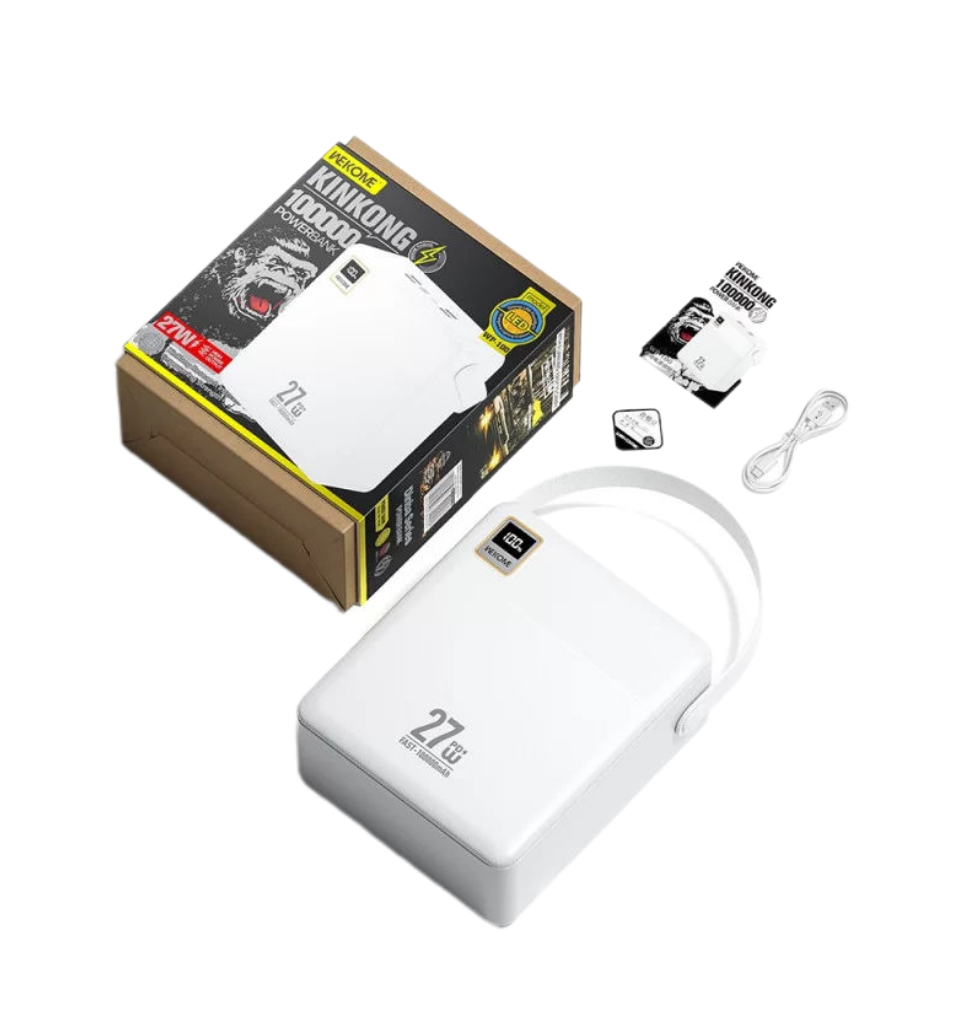WEKOME WP-100 — мощный внешний аккумулятор сверхбольшой ёмкости, созданный для длительных поездок, путешествий и экстренных ситуаций. Благодаря ёмкости 100 000 мАч он способен зарядить смартфон до 10–15 раз и одновременно питать несколько устройств.Поддержка быстрой зарядки до 27 Вт позволяет значительно экономить время, а универсальные порты делают аккумулятор совместимым со смартфонами, планшетами и другими гаджетами. Встроенный LED-дисплей точно отображает уровень заряда, а прочный корпус из ABS-пластика обеспечивает надёжность и долговечность. Многоуровневая система защиты гарантирует безопасное использование.