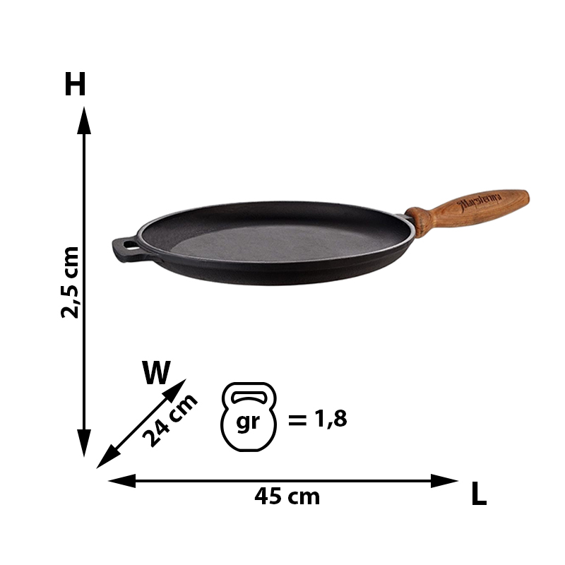 Классическая чугунная блинная сковорода для идеальных блинов каждый день. Чугун равномерно прогревается и долго держит тепло, благодаря чему блины получаются румяными, тонкими и не пригорают.