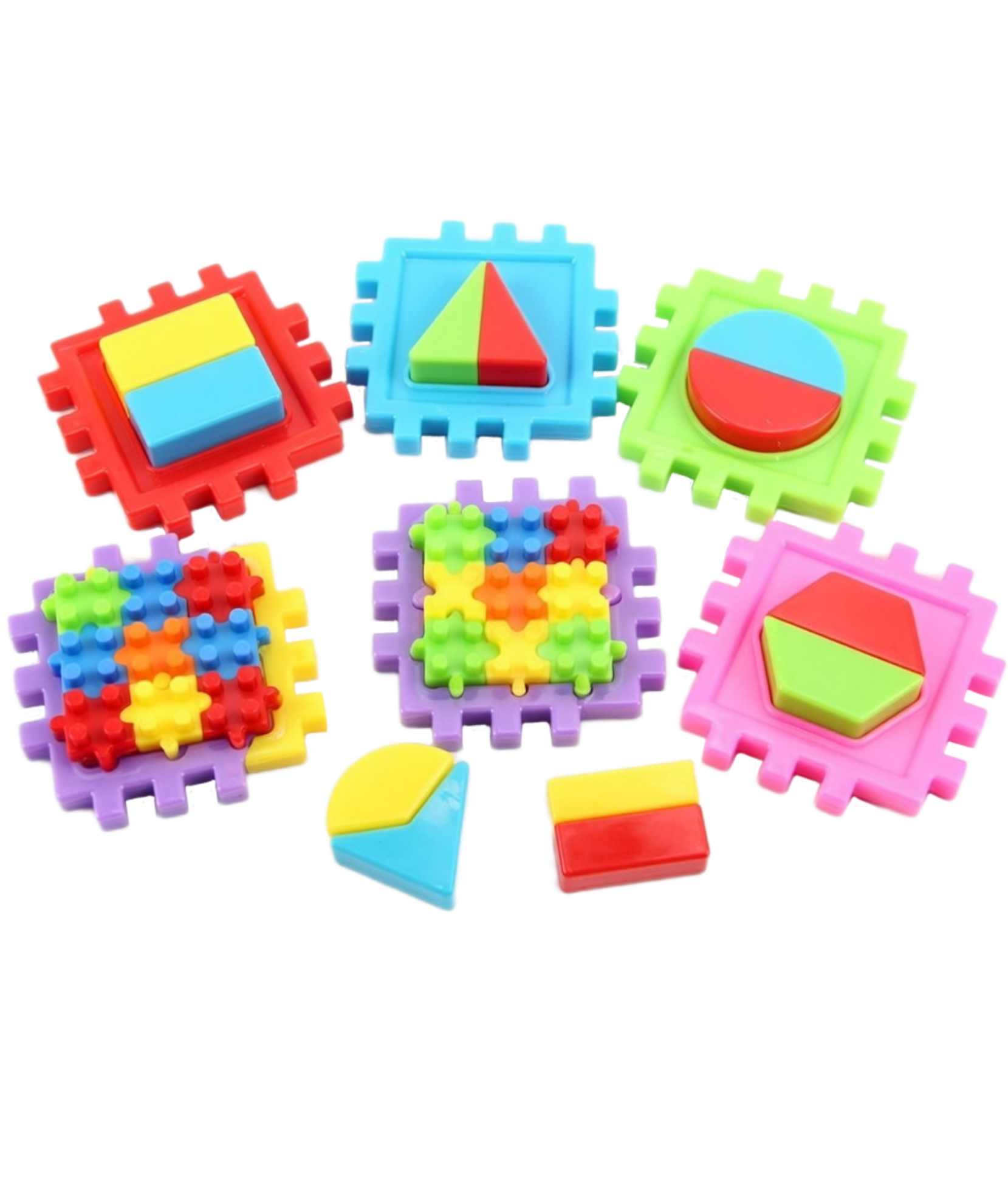 Яркий развивающий пазл с геометрическими фигурами создан специально для малышей и помогает в игровой форме развивать логику, мышление и мелкую моторику. Ребёнку предлагается подбирать и вставлять цветные фигуры в соответствующие рамки, изучая формы, цвета и пропорции.Пазл изготовлен из прочного и безопасного пластика с закруглёнными краями. Крупные детали удобно держать в маленьких ручках. Игра способствует развитию координации движений, внимания и навыков распознавания форм, а также подходит для первых обучающих занятий дома или в детском саду.