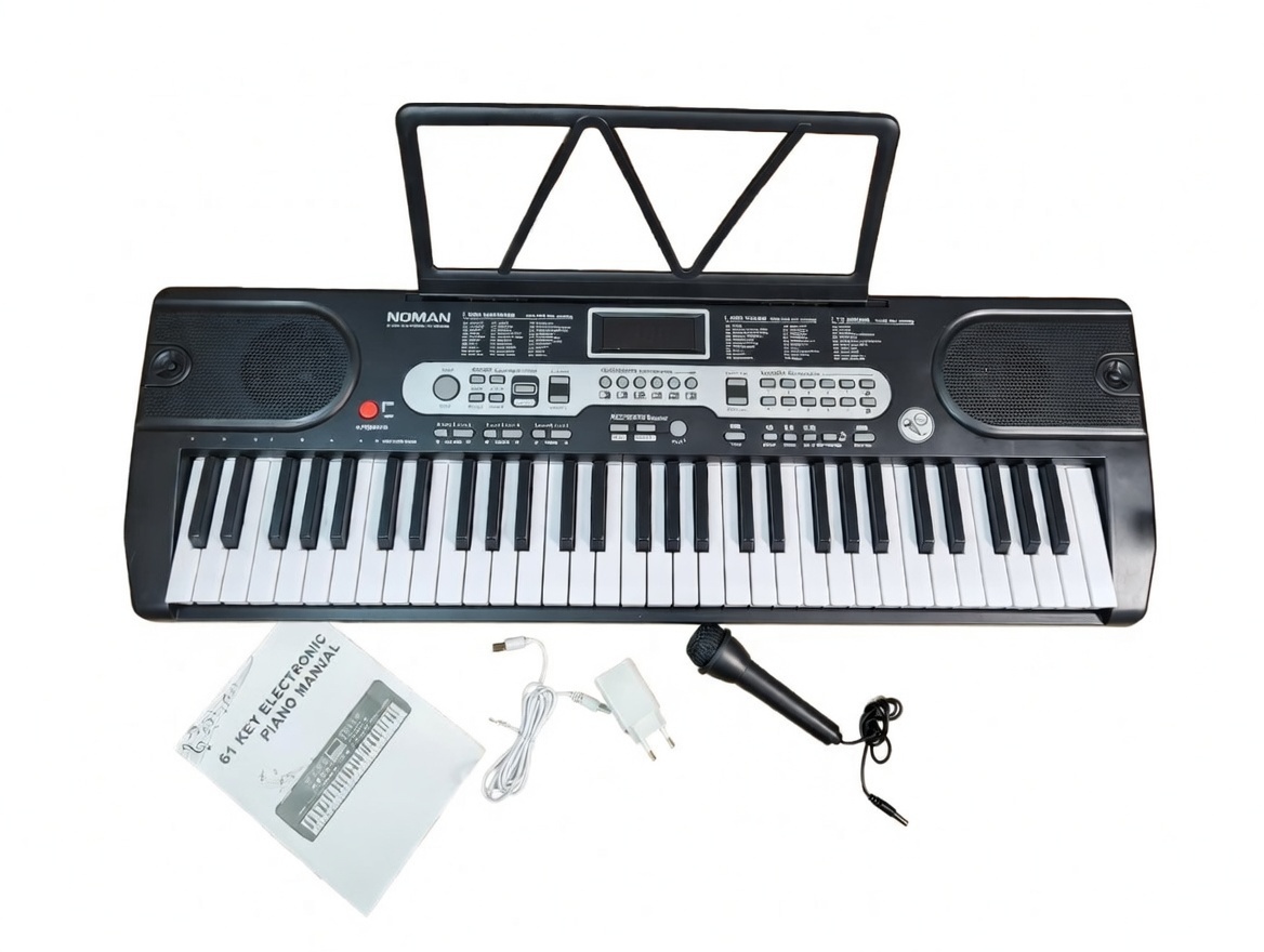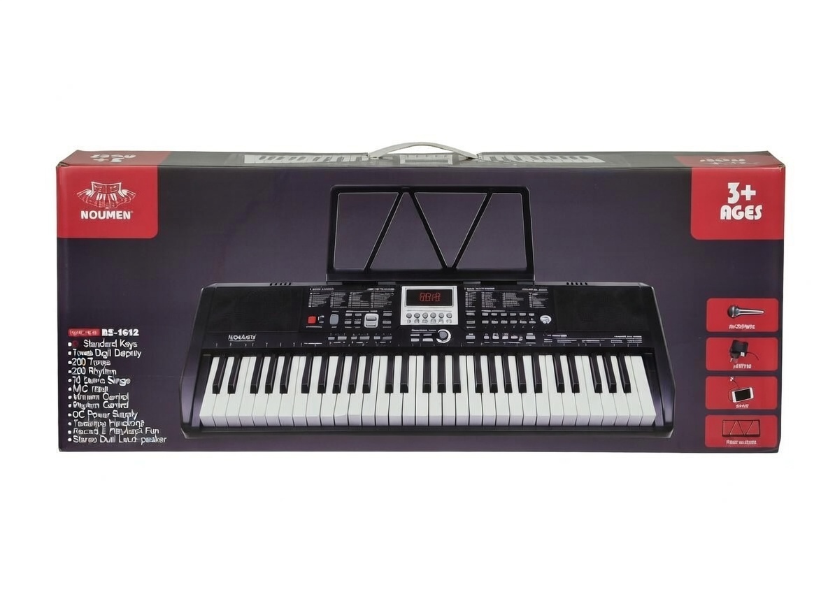 Комплект: Синтезатор, микрофон, провод, блок питания, подставка для нот, инструкция