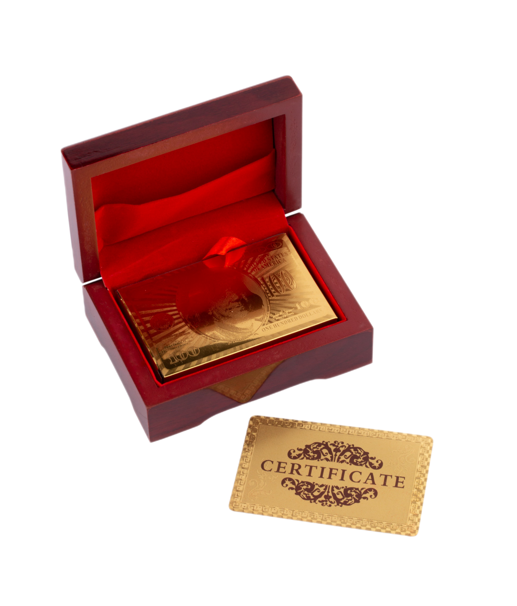 Эксклюзивные подарочные карты в футляре — стильный и оригинальный подарок для любителей карточных игр. Карты выполнены из гибкого пластика с золотистым напылением, а рубашка украшена изображением доллара, что придаёт им особый шарм.Набор отлично подойдёт для игры в покер, дурака, преферанс и другие карточные игры. Материал карт не промокает и устойчив к износу, поэтому они надолго сохранят яркий вид и новизну.Эти карты станут прекрасным аксессуаром для активного отдыха на природе и уютных домашних вечеров, а изящная подарочная упаковка делает набор ещё более привлекательным.