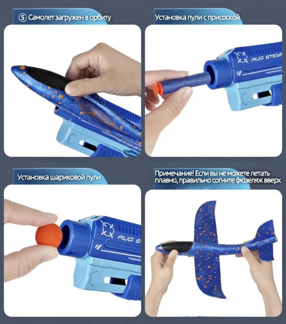 Внимание! Характеристики и изображения товара Пистолет-самолётик Shoot play ser 5в1 приведены в ознакомительных целях и могут отличаться от реальных. Рекомендуем при покупке уточнять наличие желаемых функций и характеристик.