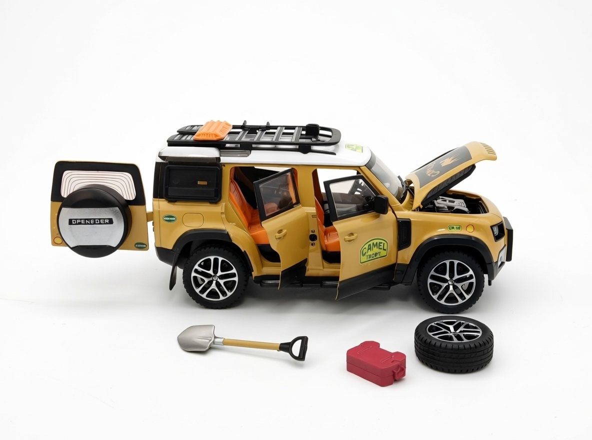 Яркая коллекционная модель легендарного внедорожника в стиле Camel Trophy — идеальный подарок для мальчиков 3+ лет и любителей off-road! Полностью открывается, с кучей аксессуаров и крутым дизайном — ребёнок почувствует себя настоящим исследователем!