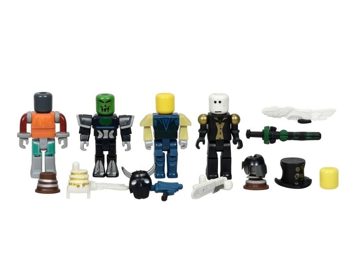 Набор Roblox Robot Riot Mix & Match — коллекция из 4 фигурок с взаимозаменяемыми частями и 10+ аксессуарами (оружие, шляпы, баки и др.). Позволяет создавать уникальных роботов и персонажей. В комплекте эксклюзивный код для виртуального предмета в Roblox. Отличный подарок для фанатов от 6 лет.