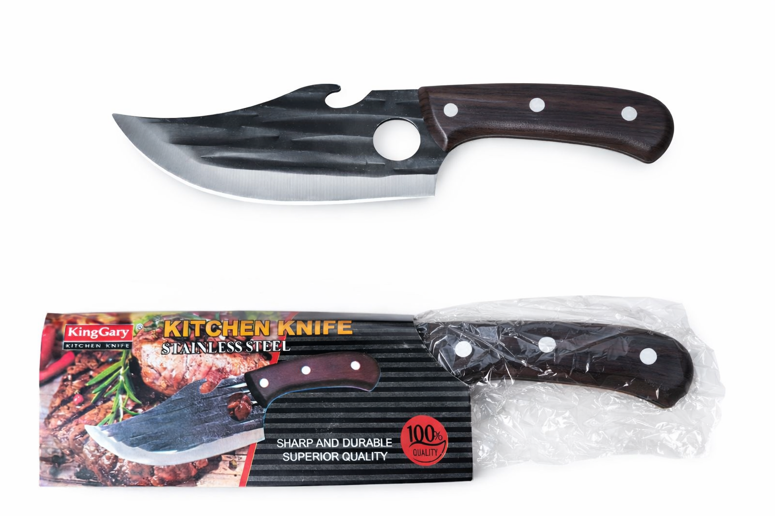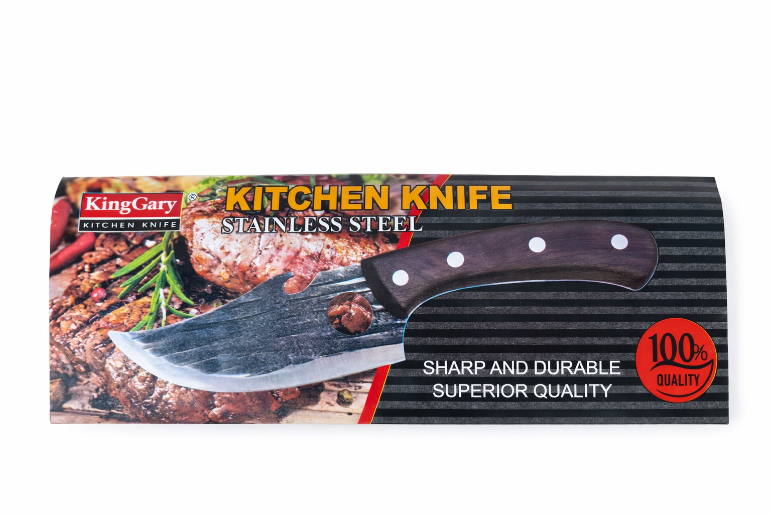 Фирменный дизайн в сочетании качества и простоты. Отлично подходит для нарезки мяса, овощей и прочих продуктов. Лезвие из прочной, нержавеющей стали обеспечивает остроту и долговечность. Удобная рукоятка ножа выполненная из дерева желает этот нож удобным в использовании.