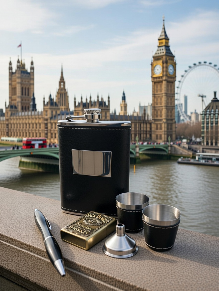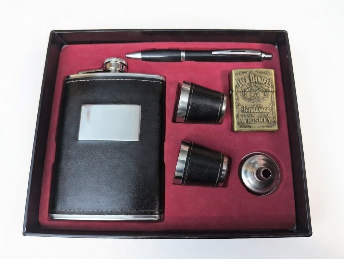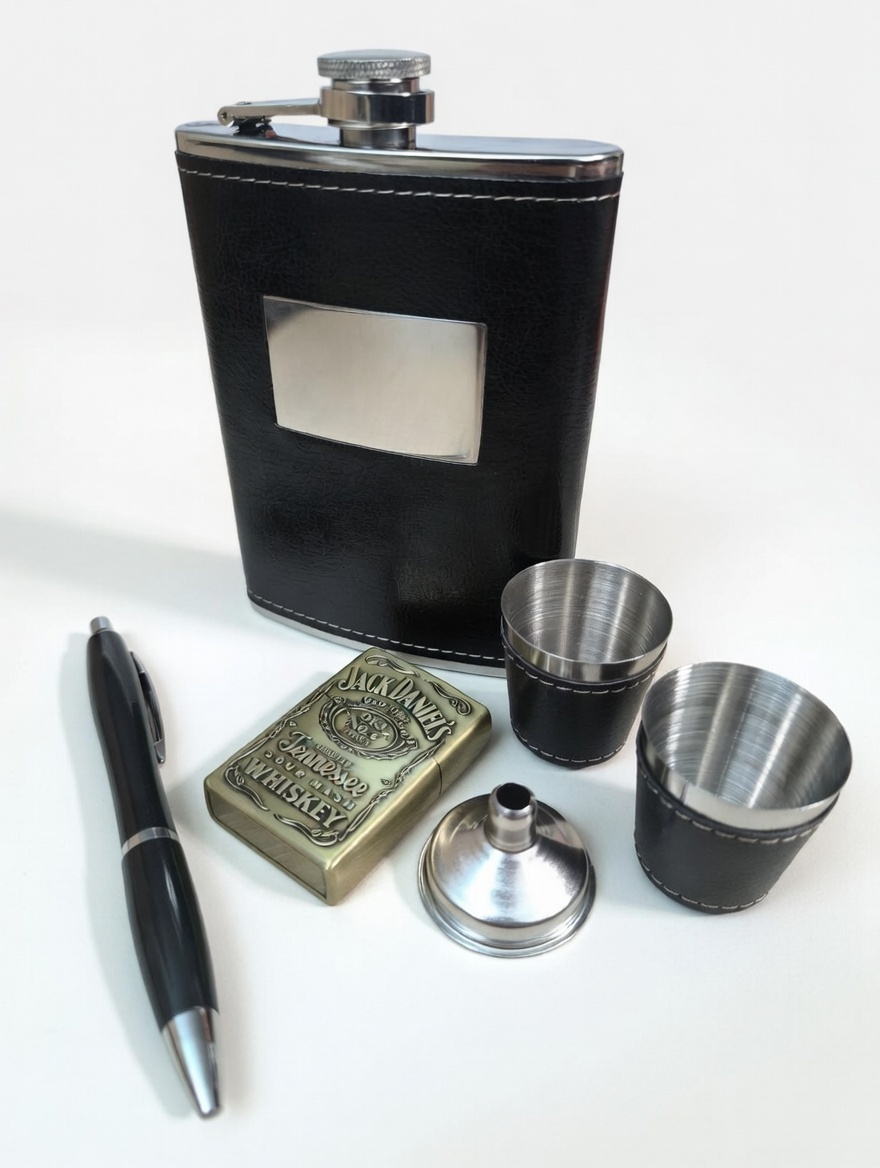 Комплектация: Фляга, две рюмки, воронка, ручка, зажигалка