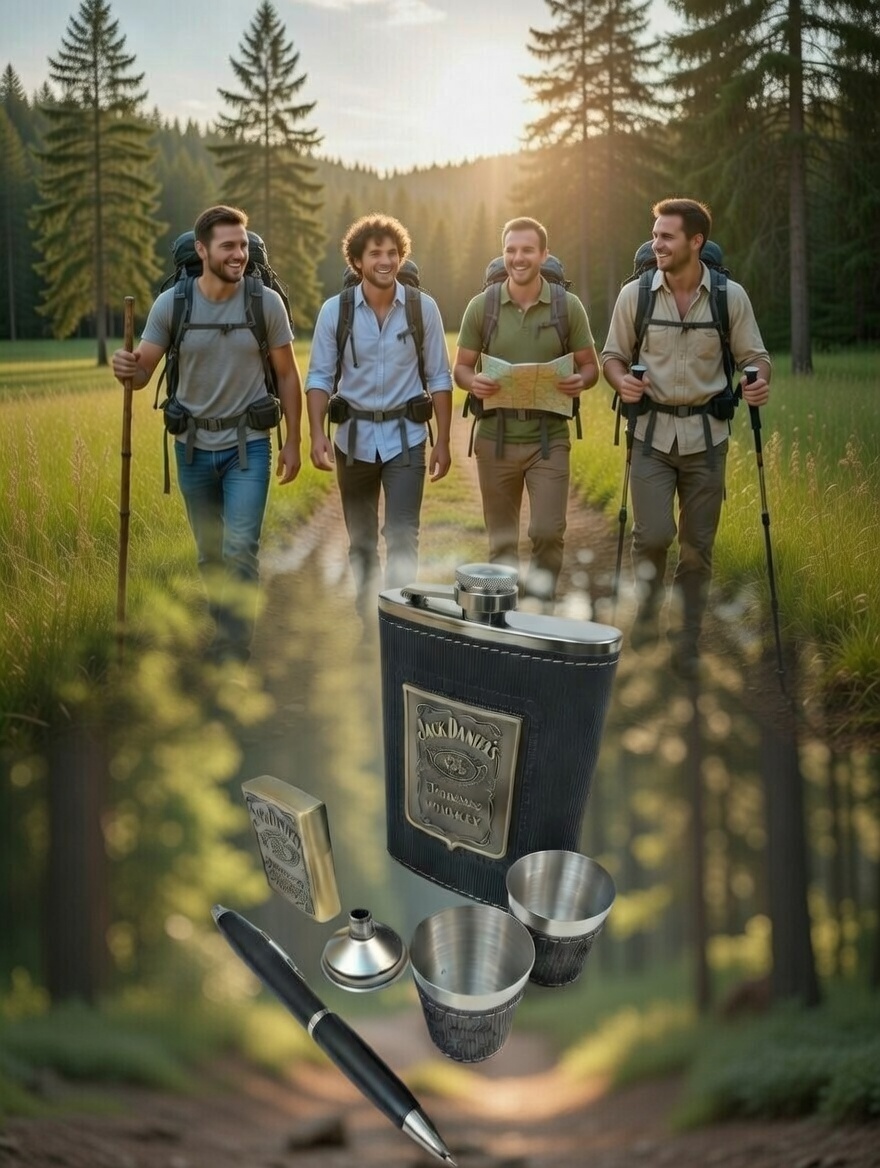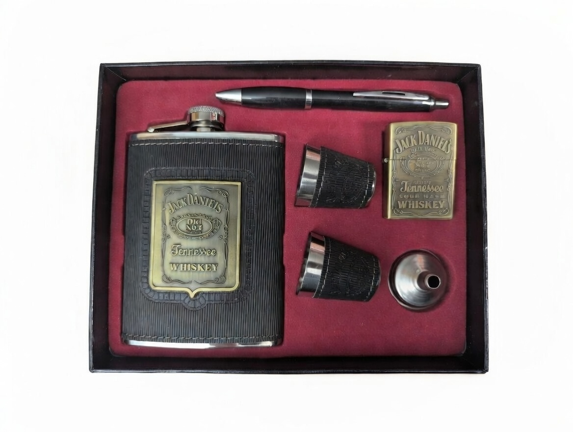 Комплектация: Фляга, две рюмки, воронка, авторучка, зажигалка