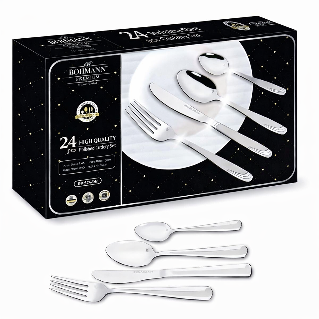 Набор столовых приборов "Bohmann" (BP-B24-SM) Качественный набор столовых приборов из пищевой, нержавеющей стали. Послужит идеальным решением на современной кухне. А оригинальный дизайн упаковки, делает этот набор интересным в качестве подарка.