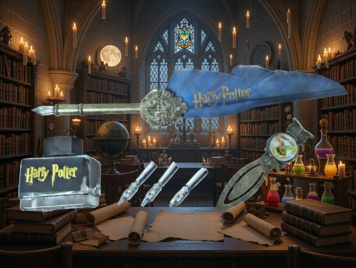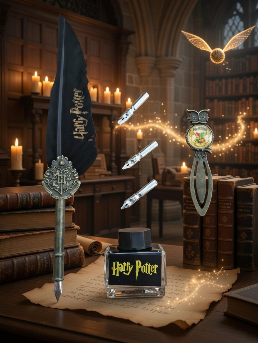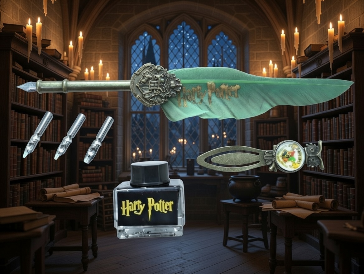 Подарочный, каллиграфический набор "Harry Potter" с перьевой ручкой, сменными перьями и чернилами.