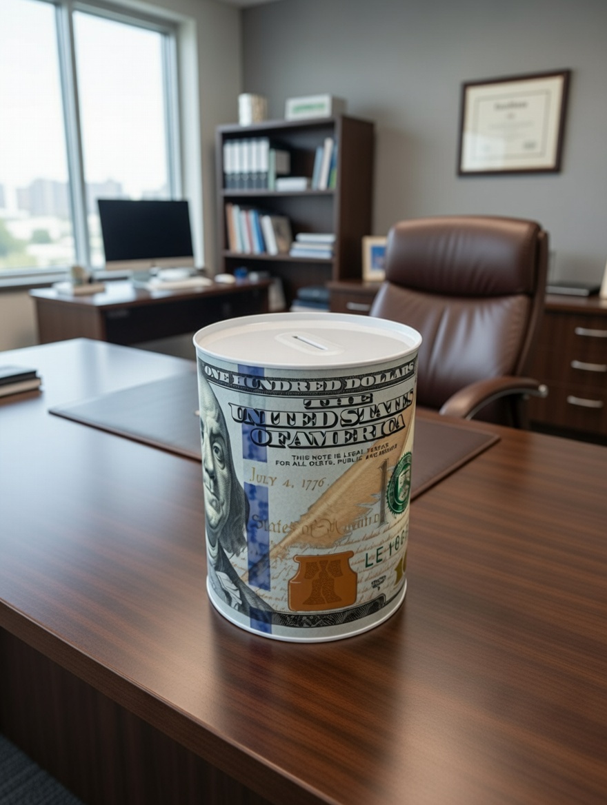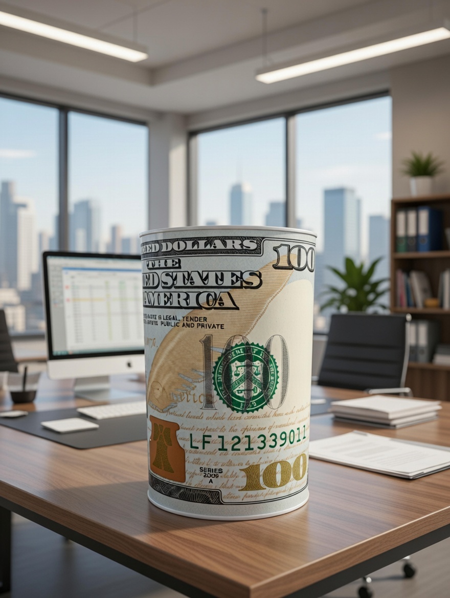<p>Копилка жестяная (34.5х19.5) выполнена в виде цилиндра, покрытого белой эмалью и рисунком в виде банкноты американского доллара номиналом 100$. <br>Лёгкая, удобная и практичная копилка, послужит оригинальным презентом. <br><br>Характеристики: </p><ul><li>Материал: Металл</li><li>Цвет: Белый (разноцветный рисунок)</li><li>Размер: (34.5х19.5)</li><li>Вес: 460 гр</li></ul>