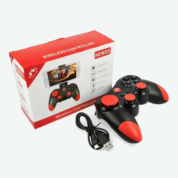Игровой джойстик NEWS5 - это контроллер нового поколения, который может работать как на ПК, так и на смартфонах, планшетах, TV Box, SMART TV. Особенность данного беспроводного джойстика S5 обусловлена тем, что девайс без проблем можно подключить посредством bluetooth соединения к большинству устройствам на платформах Android, iOS, Windows. С помощью USB адаптера можно подключать к ноутбуку или ПК. Геймпад Game S5 станет отличным приобретением или подарком как для геймера, так и для каждого любителя скоротать досуг за любимой игрой. Современный стильный и эргономичный дизайн, наличие встроенной Li-ion батареи, прорезиненные рукоятки и отсутствие надоедливого провода выгодно отличают данный девайс от конкурентов, а удобное классическое расположение кнопок позволяет вам играть в любые игры с большим комфортом. Отличный вариант для использования вместе с 3D очками виртуальной реальности.