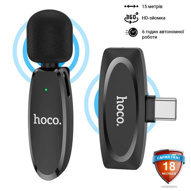 Инновационный дизайн Беспроводной петличный микрофон Hoco L15 Type-C оснащен высокотехнологичным дизайном, который обеспечивает удобство и качество записи звука.
