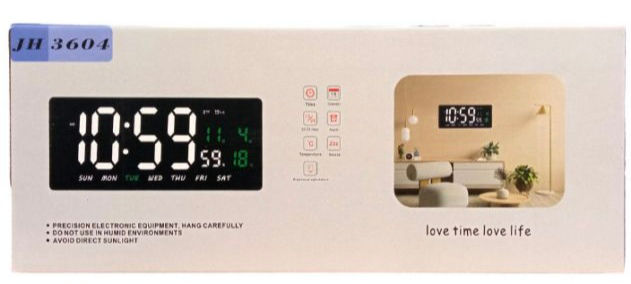 1 x Бело-зеленые светодиодные часы JH-3604 / Будильник, календарь, температура