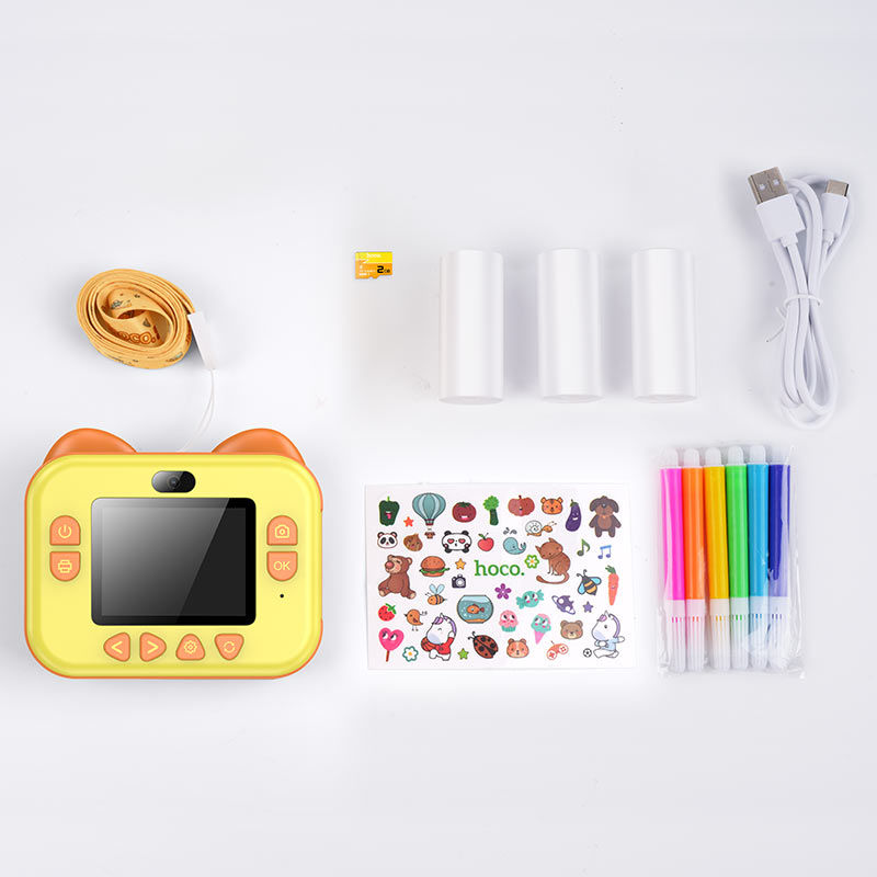 Детский цифровой фотоаппарат – новое предложение для родитей и малыша для активного времяпровождения. Благодаря уникальному яркому дизайну будет весело и интересно всем. Детский фотоаппарат с принтером - это моментальная печать простых фото. Вы можете запечатлить быстро любой яркий момент из жизни вашего ребенка. Для ребенка это увлекательная и активная игра, знакомство с техникой и природой через камеру Характеристики: размер экрана: 2,4-дюймовый IPS-экран. пиксели: 24-мегапиксельная интерполяция двойная камера материал корпуса: АБС-пластик. разрешение печати: 203 точки на дюйм. скорость печати: 40-80 мм/с. бумага для печати: 5 7 X 25 мм, зарядка: 5 В/1 А масса 301-400 г сертификация ФКС размер дисплея 2" - 3" фокусное расстояние 24–60 мм. внешняя вспышка Нет разрешение изображения 1080i/П (1920*1080) Комплектация: 1 x Мгновенная камера 1 x USB-конвертер 2 x Бумага для печати 1 x USB-кабель 1 х ремешок 1 x Руководство пользователя.