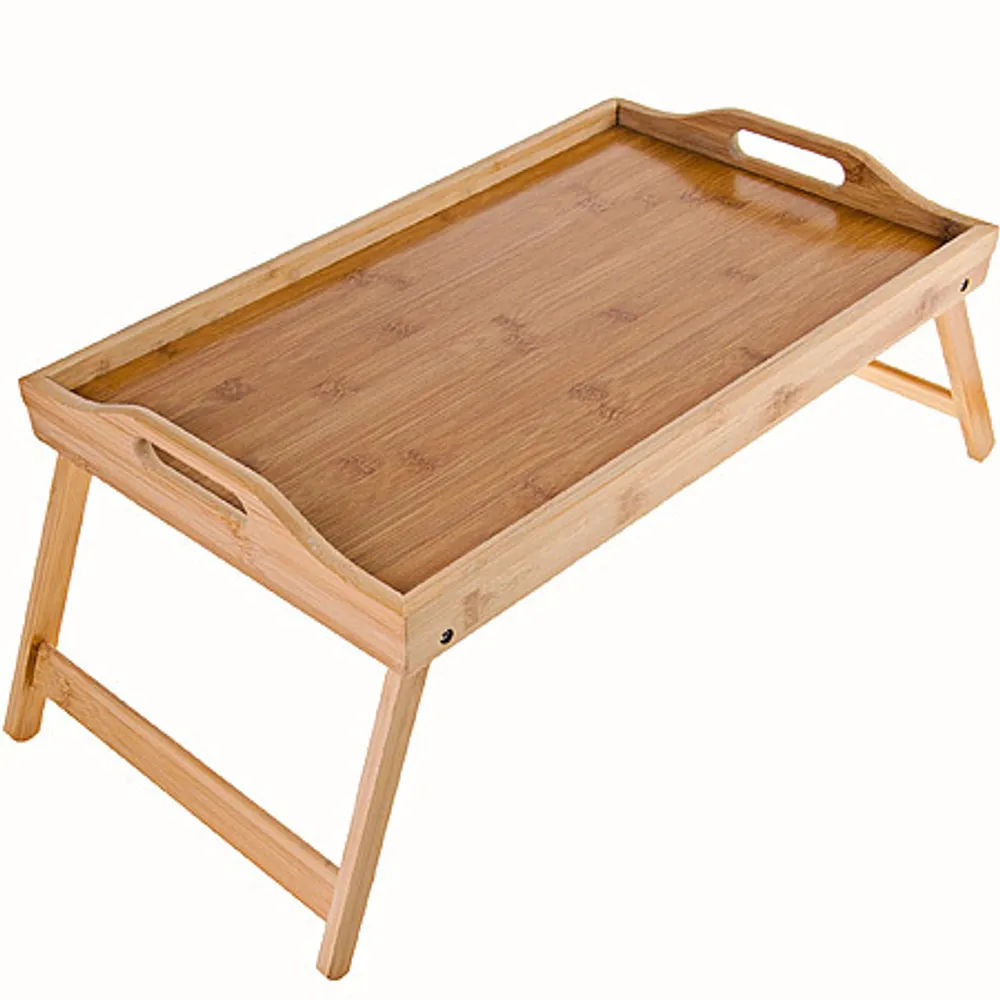 Чтобы комфортно позавтракать перед предстоящим рабочим днем, а также порадовать своего любимого человека утром выходного дня, воспользуйтесь Бамбуковым столиком для завтрака в постели. С этим столиком ваш утренний завтрак станет незабываемым! Порадуйте свою вторую половинку изысканным завтраком, используя для подачи этот столик! Такой предмет может стать удачным подарком на свадьбу, день рождения или любой другой праздник! Столик для завтрака. Материал: бамбук, МДФ. Размер столика: 30 х 50 см. Размер коробки: 30,9 х 6,9 х 51,3 см. Вес: 1,4 кг.