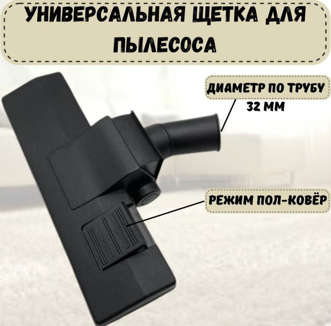 Щетка Универсальная для всех популярных фирм пылесосов: LG, SAMSUNG, ZELMER, PHILIPS, ELECTROLUX, VESTA и т.д.Щетка универсальная с колесиками на два положения пол - ковер. Подходит для всех пылесосов с трубой в диаметре от 28 мм до 38 мм.
