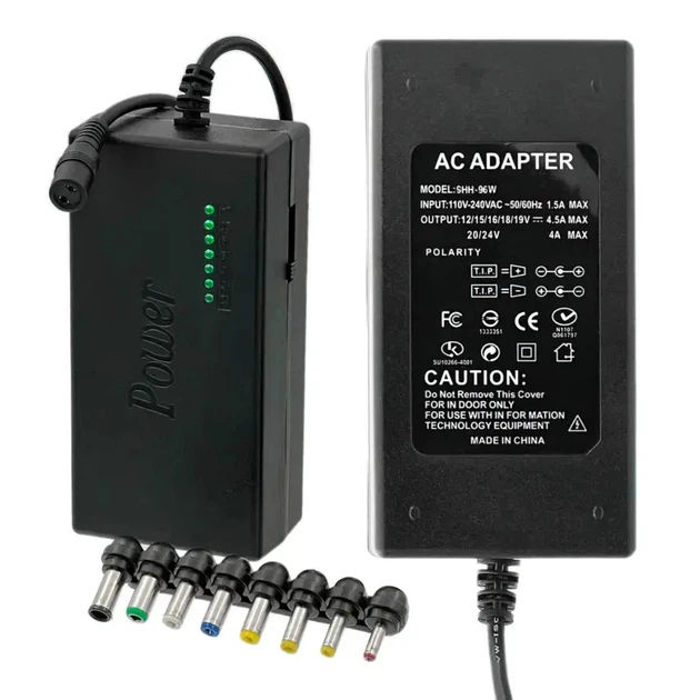 Универсальный адаптер для зарядки большинства типов ноутбуков: ASUS, ACER, FUJITSU, HP/COMPAQ, Toshiba, DELL, LENOVO/IBM. Идеально подходит для поездок и командировок, экономьте полезное место. Комплект включает 8 съемных разъемов : 6.0х4.4 мм, 6.5x4.3x1 мм, 5.0x3.0 мм, 5.5x1.7 мм, 4.8x1.7 мм, 4.0x1.7 мм, 2.5x0.7 мм, 5.5x2.5 мм (12м Входное напряжение: 110 В – 240 В AC 50/60 Гц. Выходное напряжение: 12/15/16/18/19 4.5A MAX; 20/24 В 4A MAX. Преимущества: Восемь переходников в одном комплекте; Идеально подходит для поездок и командировок; длительный срок службы; Экономия средств.