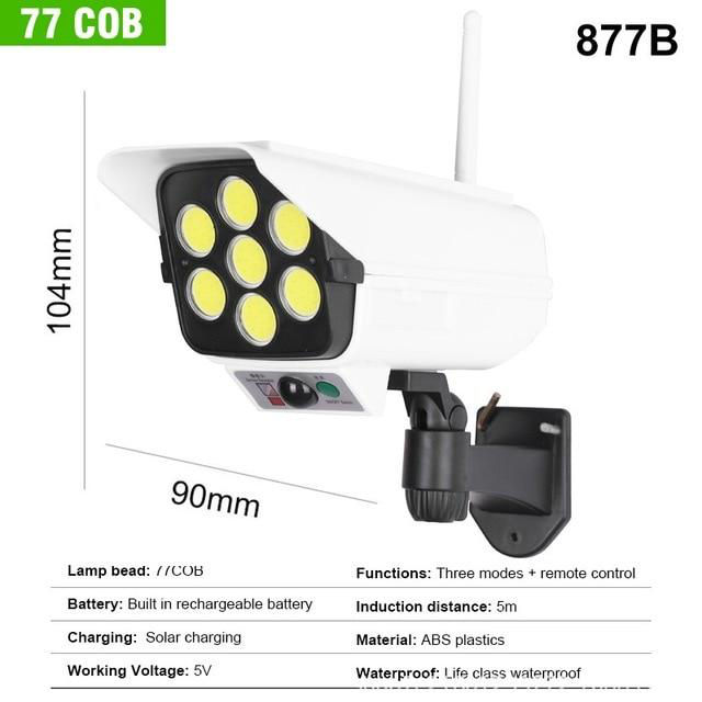 Предназначен для автономного освещения территории. Светильник работает от солнечных батарей и поэтому Вам не нужно беспокоиться о его зарядке или подключении к сети. Датчик движения срабатывает с расстояния 7 - 9 метров, при угле обзора 120 градусов. Время работы при полном заряде аккумулятора до 1 - 2 дня. Встроенных 3 режима работы (полный, 50% от мощности при неактивной работе, 100% мощности в случае движения, 50% мощности). Этот светильник может быть использован при охране различных объектов, для освещения парковок, парков, садов, территории вокруг дома и т. П. Преимущества: Не нуждается в батареях и подзарядке - работает от солнечного света; Увеличивается яркость за счет реакции на движение; Удобный и простой монтаж; Не поддается атмосферным воздействиям (дождь, снег, ветер и пр.); Компактный и легкий; 3 режима работы; Управление через пульт; Стильный внешний вид. Характеристики: Фотогальваническая солнечная панель; Рабочее напряжение: 12 вольт; Количество светодиодов: 77 SMD Цветовая температура: 6500K (белый свет, дневной свет); Фотоэлемент для автоматического управления устройством; Датчик движения: увеличивает мощность светодиодов, обнаруживая присутствие людей в этом секторе на 100%; Световая мощность, постоянная на 50% интенсивности, при обнаружении движения увеличивается до 100%; Дальность обнаружения: от 7 до 9 метров;
