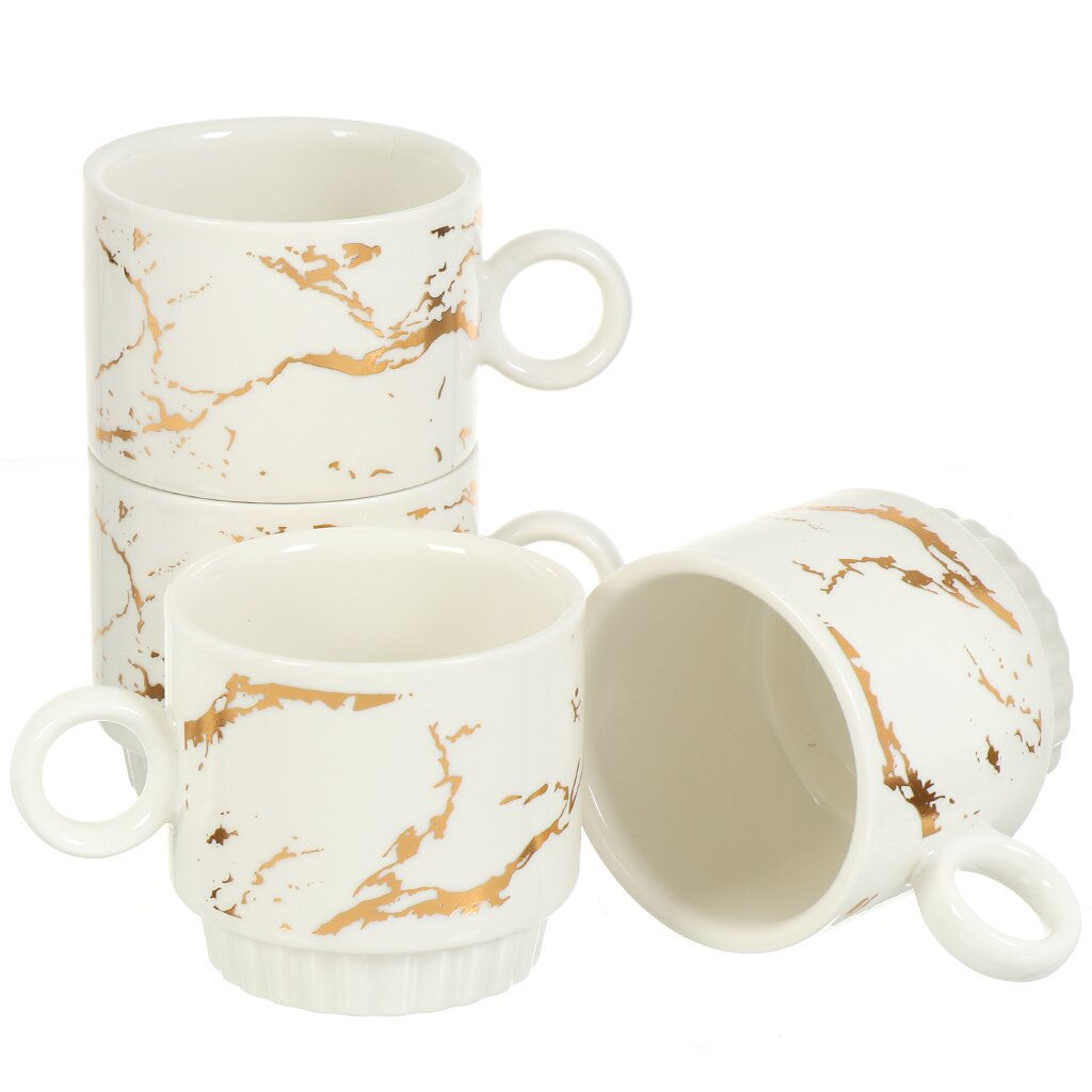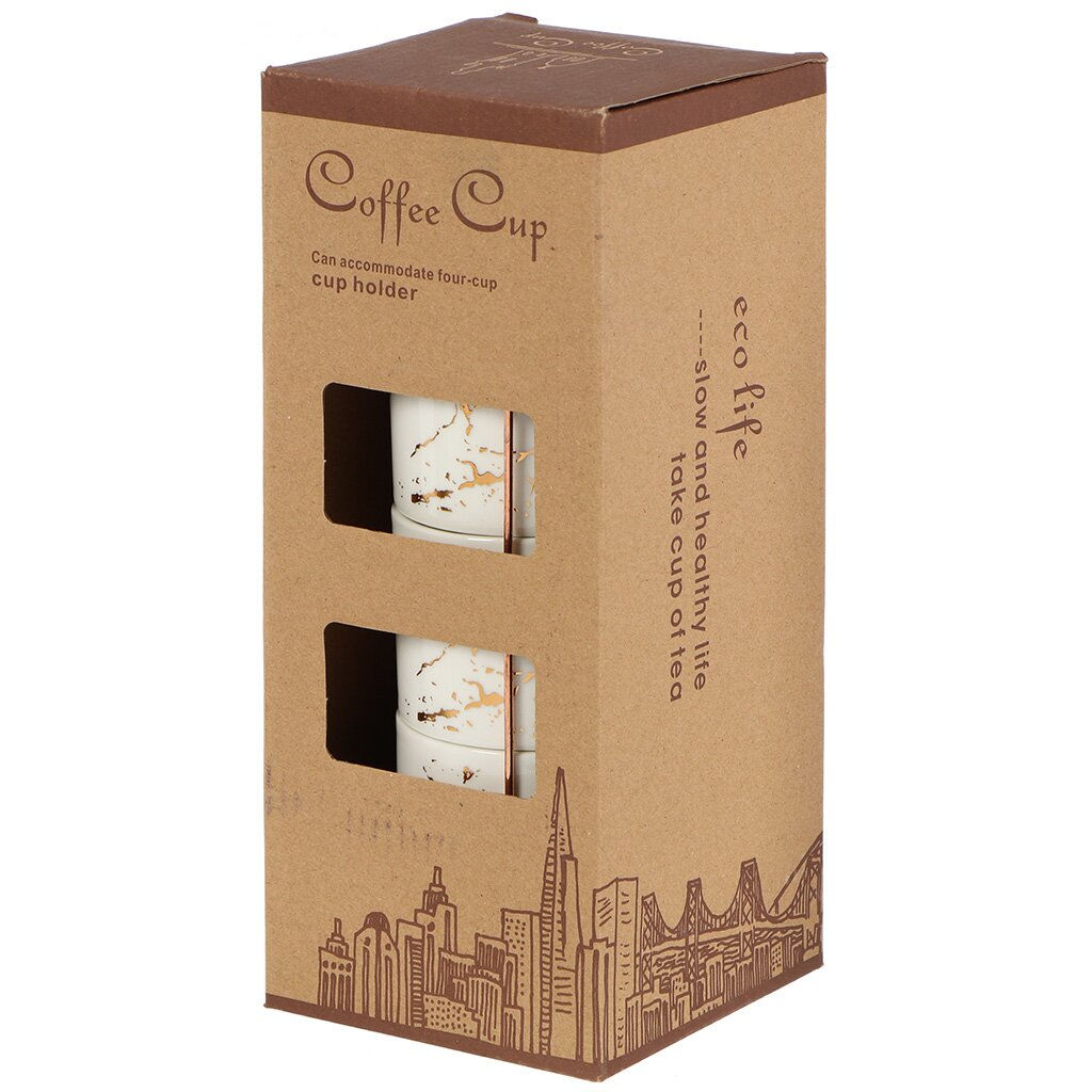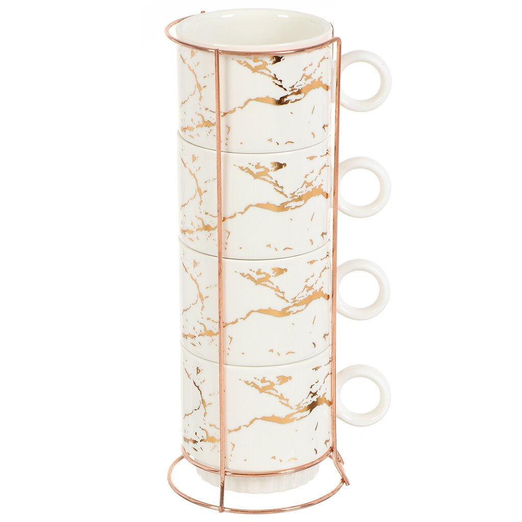 Набор состоит из 4 кружек и подставки. Кружки подходят для горячих и холодных напитков. Оригинальный дизайн придется по вкусу и ценителям классики, и тем, кто предпочитает современный стиль. Он настроит на позитивный лад и подарит хорошее настроение с самого утра. Изделия можно компактно хранить в подставке, входящей в набор. Набор кружек - идеальный и необходимый подарок для вашего дома и для ваших друзей на праздники, юбилеи и торжества.