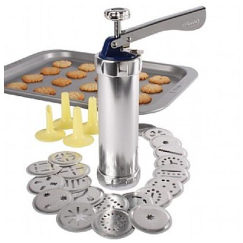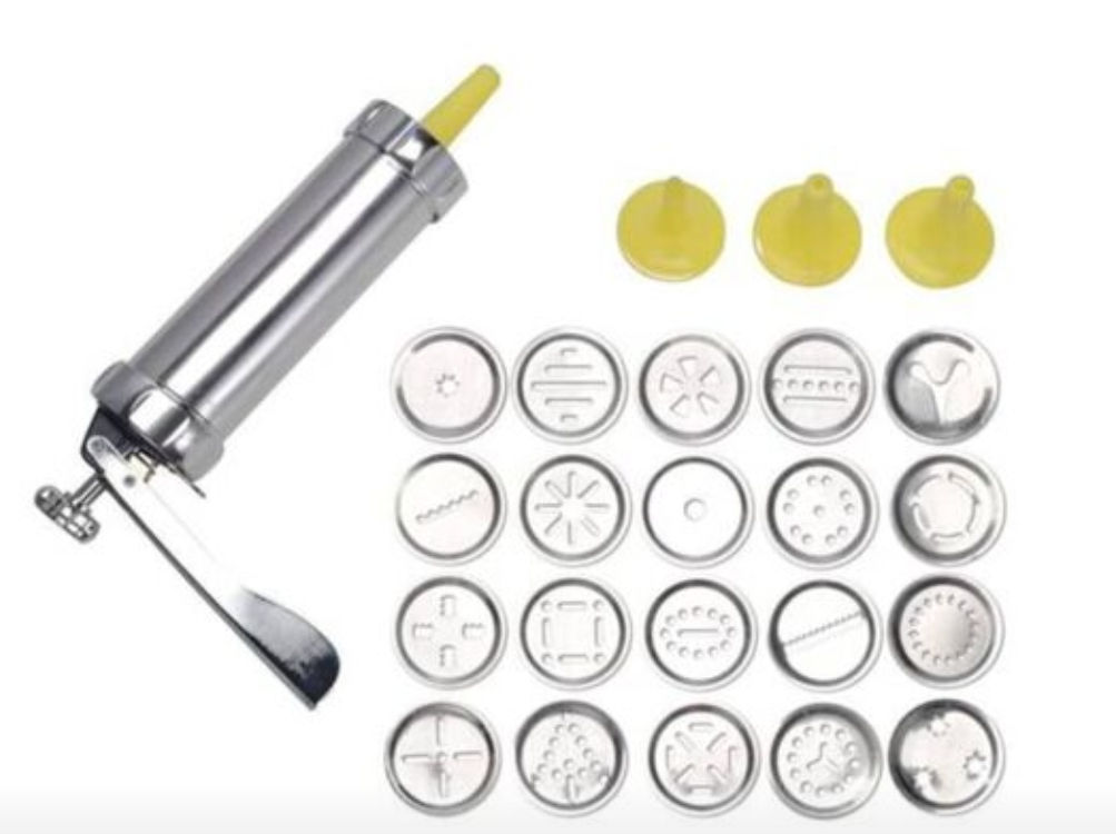 Профессиональный инструмент для идеальной выпечки. Легкий алюминиевый корпус с 20 насадками позволяет создавать аккуратное печенье любой формы. Подходит для плотного теста, удобен в использовании и уходе. Характеристики: Материал :алюминиевый сплав, нержавеющая сталь, АБС пластик. Размеры шприца: длина рабочей части - 16.5 см. 20 насадок для печенья различной формы Комплектация: кондитерский шприц-пистолет, 20 насадок для печенья,инструкция.