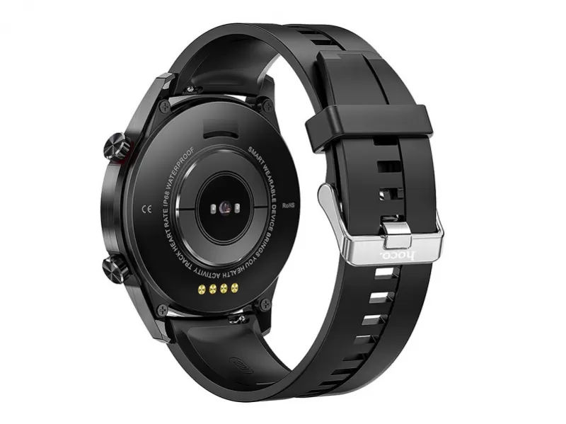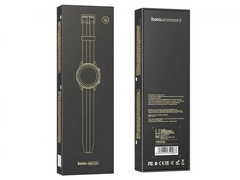 Управление музыкой: Управляйте воспроизведением музыки на вашем мобильном телефоне с часов. Bluetooth вызовы: С возможностью ответить или завершить вызов прямо из часов. Сообщения: После синхронизации с программой часы отображают уведомления по телефону. Спортивные режимы 11 режимов тренировки: Чтобы записать данные, необходимо выполнять упражнения не менее 2 минут. Дополнительные функции Секундомер: Таймер и секундомер для засекания времени. Погода: Отображает актуальную погоду. Для получения данных требуется подключение к программе. Основные характеристики Смарт часов Hoco Y2 Pro: Экран: Тип: TFT Размер: 1.28 дюйма Разрешение: 240x240 Защита от воды: IP68 Процессор и память: CPU: RTL8762CW Оперативная память: RAM 192KB Внутренняя память: ROM 64MB Связь: Двойной Bluetooth Поддержка звонков Батарея: Емкость: 260mAh Срок работы: 3-5 дней при использовании двойного Bluetooth; 7-10 дней без использования функции звонков Функции: Поиск телефона (при подключении к телефону) Отображение погоды в реальном времени Множественные спортивные режимы Мониторинг сна Отслеживание сердечного ритма Показ сообщений Напоминание о необходимости встать и размяться Языки: Поддерживает 22 языка, включая украинский, китайский, английский, русский, арабский, вьетнамский, датский, тайский, польский, персидский, испанский, малайский, греческий, французский, итальянский, немецкий, португальский, турецкий, латинский, румынский, бир. Зарядка: Выходное напряжение: 5V/0.12A Специализированный зарядный кабель для Y2 Pro
