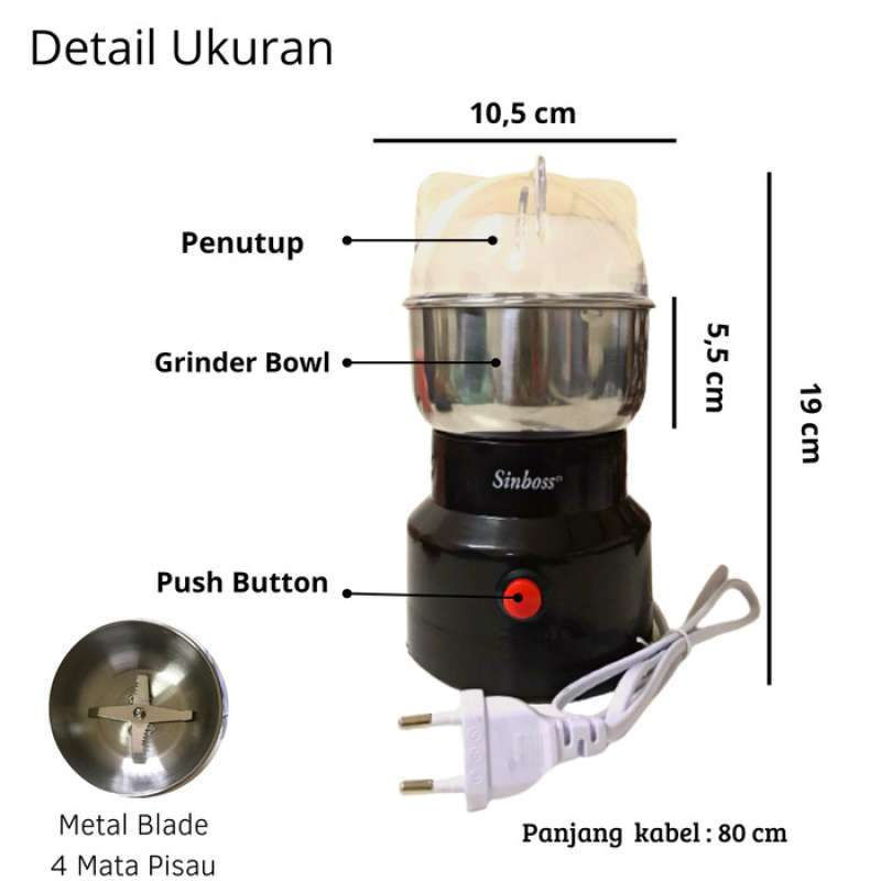 Электрическая кофемолка - Мельница - В ассортименте Кофемолка Мельница с высококачественным корпусом предназначена для измельчения различных зерен и кофе. Устройство упрощает процесс готовки и значительно сокращает время, проведенное на кухне. Простота эксплуатации Электрическая кофемолка Мельница очень проста в эксплуатации и не требует дополнительных усилий. Для работы с устройством необходимо нажать на кнопку активации и удерживать его в течение необходимого времени для качественного измельчения. Измельчает не только кофе! Кофемолка Мельница многофункциональна в использовании. Устройство измельчает не только кофейные зерна, но и крупы, специи, муку и орехи. Вы можете больше не переживать, что у вас нет дома овсяной муки или миндальной муки - просто измельчите исходный продукт в кофемолке и получите совершенно новую текстуру. Как использовать? Открутите крышку, вращая ее по часовой стрелке (вправо). Наполните чашу на 2/3. Завинтите крышку обратно (против часовой стрелки, то есть, влево) и убедитесь, что она закрыта надежно. Оптимальная длительность 1 использования — 30-45 секунд (все зависит от желаемой степени помола). Максимальная длительность использования — 60 секунд. Мощное устройство для экономии времени От мощности устройства напрямую зависит скорость его работы и измельчения. Кофемолка Мельница имеет высокую мощность 150 Вт, благодаря чему вы экономите время, проведенное на кухне. Эргономичный дизайн Стильный и компактный дизайн кофемолки Кофемолка Мельница прекрасно впишется в любой современный интерьер и не будет занимать много места, как обычные ручные кофемолки. Комплектация Электрическая кофемолка "Мельница" Инструкция на английском языке Фирменная упаковка.