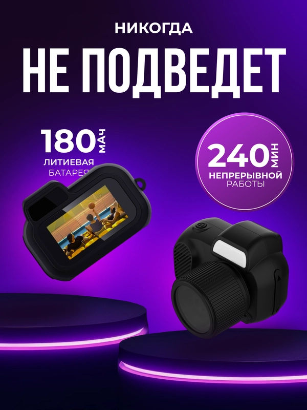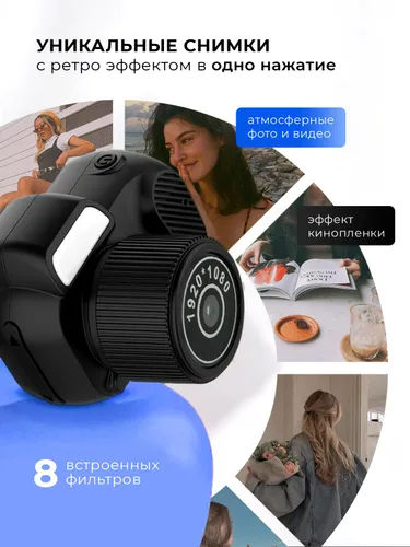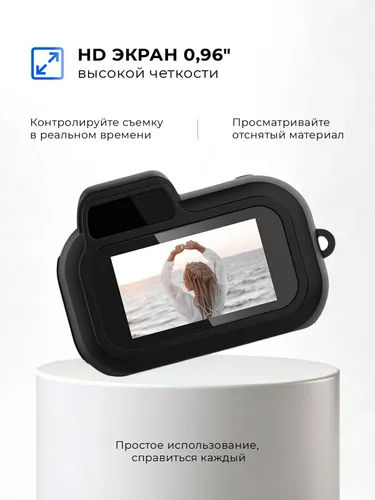 Мини-камера для съемки фото и видео - это уникальный, многофункциональный и стремительно набирающий популярность аксессуар. Фотоаппарат невероятно компактный и легкий, его вес составляет всего 19 грамм, что делает его идеальным спутником в повседневной жизни для создания спонтанных фото и видео, а также незаменимым аксессуаром для запечатления моментов, память о которых хочется сохранить на долгие годы. Он легко помещается в карман и может быть использован как брелок, благодаря кольцу на корпусе. Несмотря на крошечные размеры фотоаппарат-брелок оснащен высококачественной камерой с разрешением 1920x1080 пикселей и микрофоном для записи аудио, что позволяет делать четкие, детализированные снимки и создавать яркие, красочные видео. Камера-брелок имеет HD-экран размером 0,96 дюйма и 8 фильтров для съемки – это дает возможность лучше подбирать ракурс, свет и цветовую гамму, а также с удовольствием просматривать полученные результаты. Карманный фотоаппарат обеспечивает 240 минут непрерывной работы за счет мощной литиевой батареи ёмкостью 180 мАч. Цифровая камера поддерживает карты памяти microSD, что решает проблему хранения фото и видео и их переноса на телефон или компьютер. Фотоаппарат заряжается с помощью USB-кабеля и может быть подключен к любому устройству при помощи разъёма, который расположен на корпусе. USB-кабель для зарядки Тканевый ремешок в комплекте