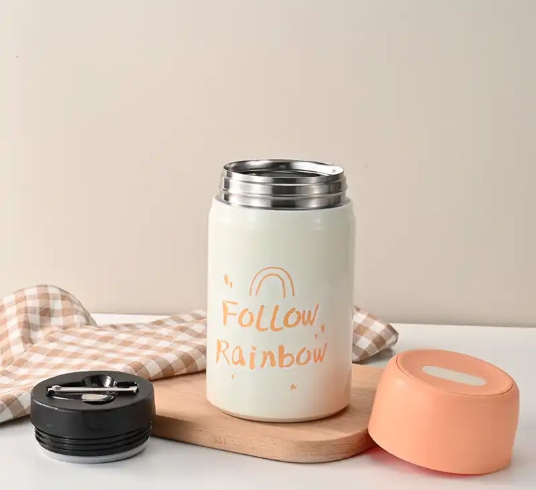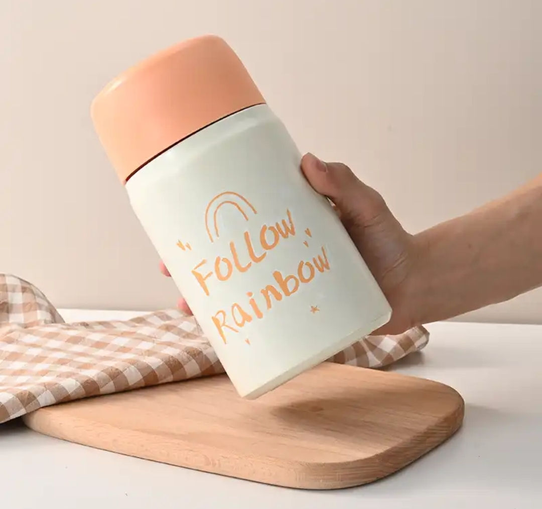Милый и практичный термос для еды из нержавеющей стали. Этот термос имеет двойные стенки из нержавеющей стали и может сохранять пищу теплой до 6 часов и холодной до 8 часов. Термос очень практичен и идеально подходит для хранения как теплой еды, так и перекусов. Объем 1000мл. В комплекте удобный чехол. Разборная ложка в комплекте. Термос упакован в красивую коробку