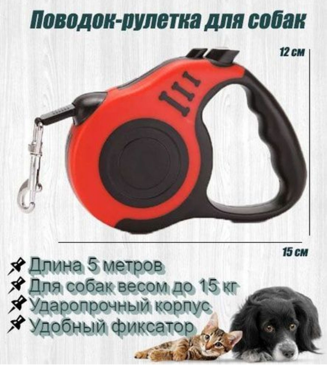 Поводок рулетка для собак - это незаменимый помощник, предназначенный для ежедневного и комфортного выгула питомца. Поводок-рулетка является самым популярным аксессуаром, среди любителей четвероногих друзей. Данный механизм удобен в использовании, а также легко помещается в кармане, что весьма упрощает процесс выгула питомца. С его помощью вы сможете самостоятельно контролировать дистанцию, а также избежать некоторых неприятностей, которые могут возникнуть в следствии выгула собаки. Поводок-рулетка для собак весом до 15 кг жёлтого цвета - это изделие, со специально встроенным механизмом, при помощи которого вы сможете раскручивать и скручивать поводок. Такая возможность предоставляется, благодаря наличию отдельного пружинного механизма внутри поводка. Отличительной чертой такого изделия, является наличие отдельного фиксатора, при помощи которого можно устанавливать необходимое расстояние от хозяина до питомца, при помощи отдельной кнопки. Удобная ручка, стильный дизайн, корпус из прочного Abs пластика, нейлоновая лента длиной 5 метров которая не спутывается, все это обеспечит надежность в эксплуатации и удобство. Преимущество товара - это удобство. Вам больше не придется наматывать длинный поводок на руку, для того чтобы ваш питомец не попал под колеса встречного автомобиля, что является весьма неудобным действием, а также может создавать некий дискомфорт в ситуациях, когда собака сопротивляется. Поводок-рулетка - это самое эффективное средство, созданное для устранения любых неудобств, связанных с выгулом домашних животных. Яркий, красочный и интересный дизайн, сделают прогулку более приятной. Отлично подойдёт для собак маленьких и средних пород (йоркширский терьер, чихуахуа, французский бульдог, кокер-спаниель, пудель, шпиц, мопс, такса, пекинес). Характеристики: Материал корпуса рулетки: Пластик Материал поводка: Нейлон Материал карабина: Металл Предназначен для собак весом до 15 кг. Размер корпуса 13 см х 8,8 см Длина поводка: 5 метров.