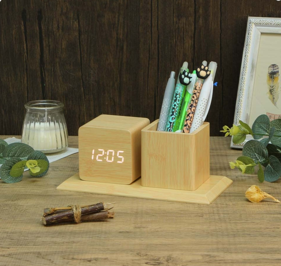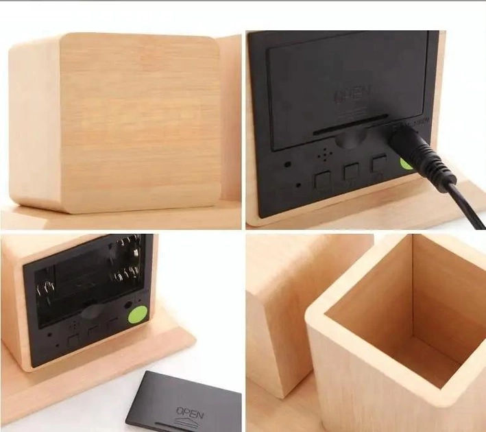 Настольные часы – это не просто функциональная вещь, но и предмет интерьера, который способен расставить нужные акценты и принести гармонию. Оригинальный дизайн, полностью безопасные и качественные материалы. Благодаря сочетанию фактуры дерева и минималистическому циферблату, настольные часы универсальны: их можно разместить на прикроватной тумбе в спальне, на полке или комоде в гостиной, разместить их в кабинете на рабочем столе или же в рабочей зоне офиса. Вы оцените все преимущества наших настольных часов : Качественный механизм хода, который не будет вас отвлекать; Часы работают от трех батареек AАА , которые с легкостью можно заменить в случае необходимости; Или от кабеля DC5V Приятная подсветка Два режима отображения времени; Постоянное свечения или реакция на звук. Три будильника Большой выбор применения в дизайне; От вазы до подставки для канцелярии Габариты: Высота 76 Ширина 190 Глубина 100 Вес: 345 гр Вес в упаковке: 473 гр Комплект поставки: Часы Инструкция (на Английском языке)