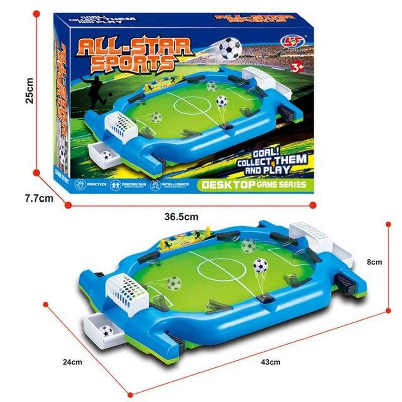 Детская настольная игра футбол All-Star Sports Игра футбол настольная - эта игра станет любимой у Вашего ребенка. В настольный футбол можно играть с друзьями и всей семьей. С ней ребенок почувствует вкус победы. Игра динамичная и ему некогда будет скучать, эмоции будут накаляться с каждой секундой. Поле слегка выпуклое и благодаря этому мяч всегда катится только по одной из сторон. Счет меняется при помощи кнопок на боковой панели поля. Начало игры происходит случайно, так как на трибуне предусмотрена пусковая установка. В комплекте идет 2 мяча. Размеры игрушки 43 см х 24 см х 9 см. Игра не займет много места на столе. Также игра футбол станет отличным подарком для любого ребенка. Внимание!!! Рекомендуется детям от 3 лет!!! Комплект поставки: - Игра футбол Flipper настольная - 2 мяча - Ворота - Упаковка