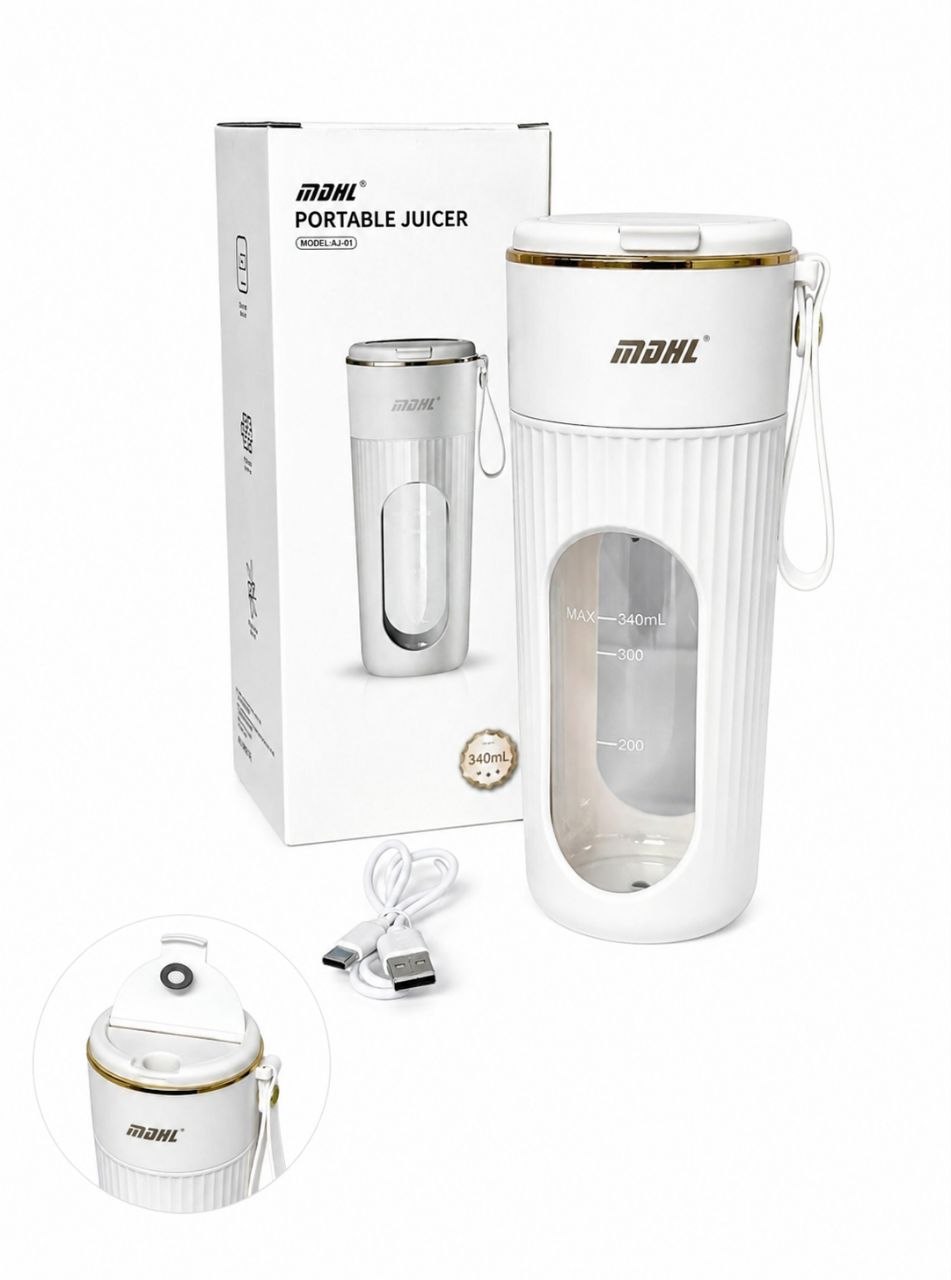 Короткое описание (Meta + начало карточки) Портативный беспроводной блендер MDHL AJ-01 340 мл с 14 лезвиями из нержавеющей стали. Удобно готовить смузи, шейки и фреши дома, в офисе и в поездках. Type-C зарядка и LED-дисплей.